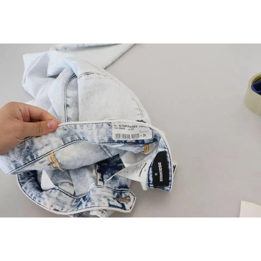 بنطلون جينز قصير من Dsquared² أزرق اللون ممزق بقصة Twiggy وذو خصر متوسط