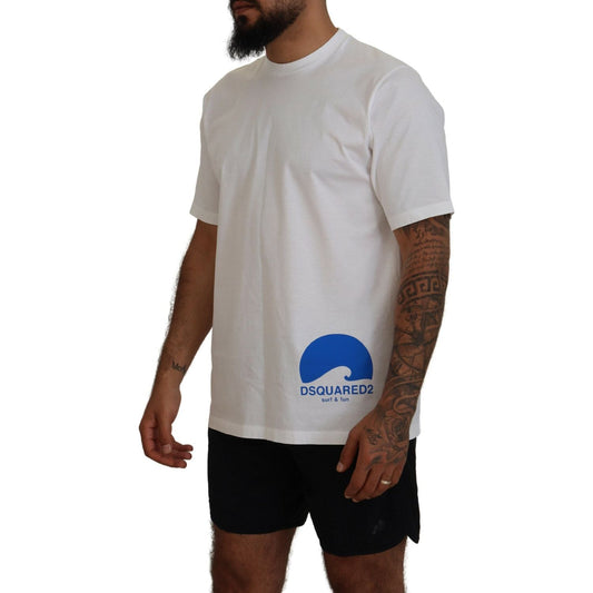 تي شيرت Dsquared² أبيض من القطن بأكمام قصيرة ورقبة دائرية