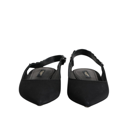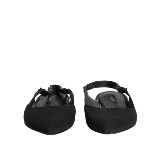 Dolce & Gabbana Black Crystal Charmeuse Slingback Shoes