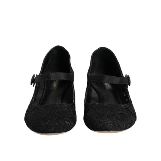 Dolce & Gabbana Black Mary Jane Taormina Lace Pumps Shoes
