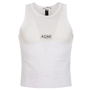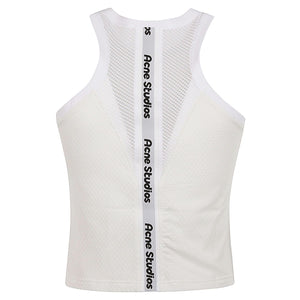 White tank top, with logo, wrapping cut, stretch fabric. Logo tank top Size and Fit - This piece fits true to size. We recommend you get your regular size. Model is 1,84m / 6ft 1in wearing size M