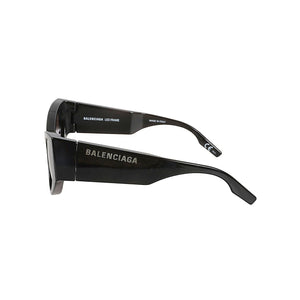 Black glasses, sunglasses, Balenciaga logo engraved on the left astina. Sunglasses