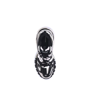 Balenciaga’s Track Sneakers combine performance and cutting-edge design in a technical, urban aesthetic. Made of mesh and nylon, they are enhanced by a series of iconic details: written size on the toe, embossed Track logo on the heel, BB logo on the front sole, and printed logo on the outer side. The tongue features an embossed logo and a loop, also echoed on the heel for easy donning. The double laces are knotted in the traditional hiking style, while the dynamic sole, accentuated on the back, provides comfort and stability. A model designed for those seeking style, functionality and a strong identity.