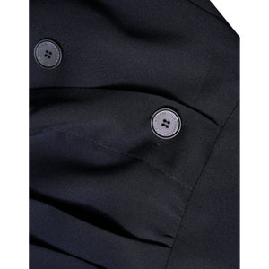 Ballantyne Dark Blue Long Sleeves Pleated A-line Maxi Dress