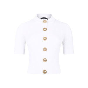 front button fastening Crewneck cardigan Size and Fit - This piece fits true to size. We recommend you get your regular size. Model is 1,75m / 5ft 8in wearing size 36 (FR)