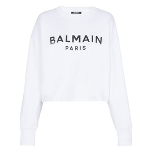 white cotton logo print to the front crew neck drop shoulder long sleeves ribbed cuffs straight hem cropped This item is made from at least 50% organic materials. Learn more about what makes a product Conscious on our Conscious Criteria page. Logo organic cotton cropped sweatshirt Size and Fit - This piece fits true to size. We recommend you get your regular size. Model is 1,75m / 5ft 8in wearing size S
