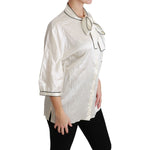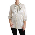 بلوزة دولتشي آند غابانا الأنيقة من الحرير باللون البيج مع وشاح على شكل فيونكة