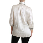انغمس في مثال الفخامة الإيطالية مع هذه البلوزة الرائعة من دولتشي آند غابانا. مثالي لرفع مستوى أي مجموعة راقية، يتميز هذا القميص باللون البيج بمزيج فاخر من الحرير مع القدر المناسب من التمدد لملاءمة مريحة ومصممة خصيصًا. هذه البلوزة المزينة بوشاح حريري ساحر على شكل فيونكة لإضفاء لمسة إضافية من الأناقة، هي شهادة على اهتمام العلامة التجارية بالتفاصيل والحرفية الراقية. مزود بزر إغلاق كامل وتفاصيل دقيقة للشعار، مما يمنحك مظهرًا أنيقًا دون عناء في أي مناسبة.