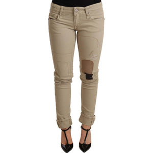 بنطلون جينز ضيق من القطن باللون البيج من Acht