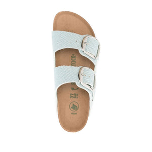 surf green vegan canvas round open toe double-strap design with buckle fastening moulded cork footbed rubber outsole flat sole slip-on style Arizona Big Buckle sandals Size and Fit - Narrow width