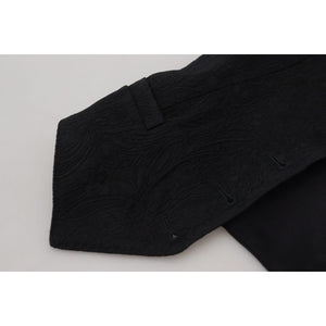 انغمس في مثال الفخامة مع هذه الصدرية الرائعة من دولتشي آند غابانا. هذه القطعة الجديدة تمامًا، والمكتملة بالعلامات، مصنوعة من مزيج فاخر من الصوف البكر والحرير والإيلاستين، مما يضمن الراحة والأناقة. يبرز اللون الأسود المتطور مع زر التثبيت الأمامي الأنيق أناقته المصممة خصيصًا. مثالية لأي متذوق للأزياء الراقية، هذه السترة المصنوعة في إيطاليا مزينة بتفاصيل شعار دقيقة تشير إلى نسب علامتها التجارية اللامعة.