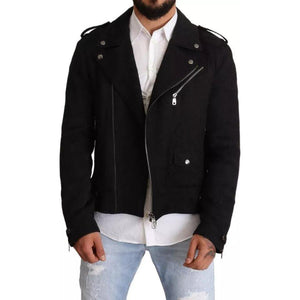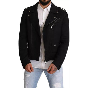 سترة بايكر مذهلة تمامًا، أصلية 100%، جديدة تمامًا مع علامة Dolce & Gabbana التجارية. تتميز بسحّابات على الأكمام وكتف وجيوب أمامية بسحاب للإغلاق.