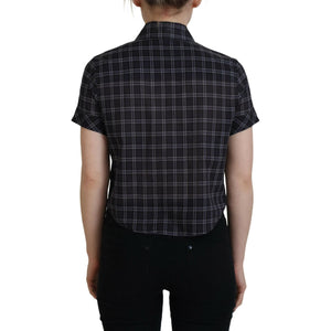 بلوزة Dsquared² سوداء منقوشة بأزرار وأكمام قصيرة