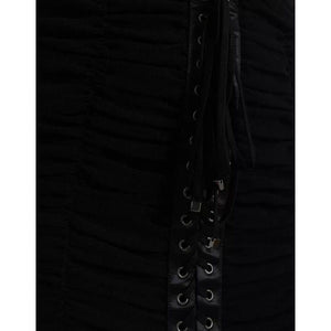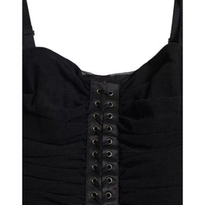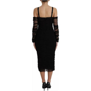 فستان دولتشي آند غابانا أسود مكشوف الكتفين من التول المطاطي متوسط الطول