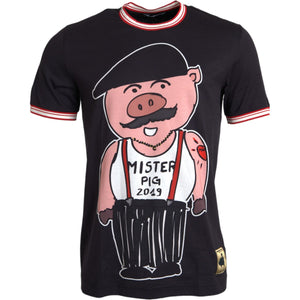 تي شيرت دولتشي آند غابانا قطني أسود بطبعة عام الخنزير 2019