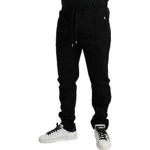 حدّدي الراحة والأناقة مع بنطال الركض الأسود الفاخر هذا من Dolce & Gabbana، وهو مثالي لتعزيز خزانة ملابسك الكاجوال. مصنوع من مزيج القطن عالي الجودة، ويتميز بخصر مطاطي، وإغلاق برباط أنيق، ومزين بالشعار الأيقوني الذي يجسد الحرفية الإيطالية.