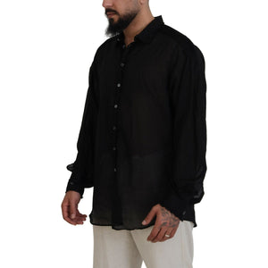 قميص رسمي بأكمام طويلة وياقة من القطن باللون الأسود من Dsquared²