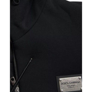 سترة مذهلة للغاية، أصلية 100%، جديدة تمامًا مع علامات Dolce & Gabbana، تتميز باللون الأسود، ومزيج القطن، ولوحة الشعار، وغطاء للرأس، وسحاب كامل، وأكمام طويلة وجيوب.
