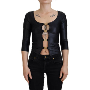 بلوزة دولتشي آند غابانا الأنيقة باللون الأسود بأكمام ثلاثة أرباع مع تفاصيل ذهبية