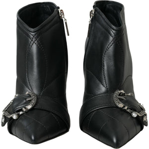 رائع، جديد تمامًا مع علامات Dolce & Gabbana الأصلية بنسبة 100%، تعكس الأناقة الصقلية، مستوحاة من نمط الحياة الإيطالي اليومي، مثل هذه الأحذية الجلدية السوداء المبطنة والمثبتة. يتميز هذا المنتج بمقدمة قدم مدببة وغلق بسحاب جانبي ونعل داخلي بعلامة تجارية وكعب عالي رفيع.