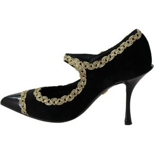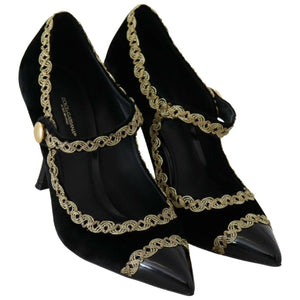حذاء دولتشي آند غابانا الأنيق المصنوع من المخمل الأسود والمطرز بالذهب
