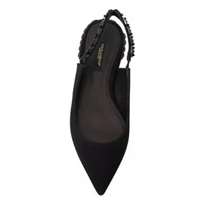 حذاء دولتشي آند غابانا الأسود المسطح ذو الكعب العالي والمزين بالكريستال