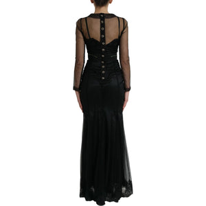 فستان سهرة طويل من التول المطرز بالورود من دولتشي آند غابانا
