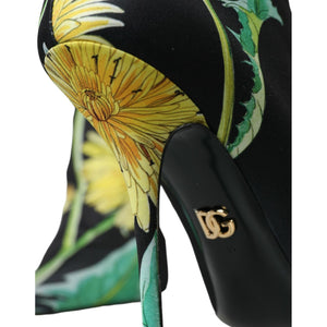 حذاء من قماش الجيرسي المطاطي الأسود المزهر من دولتشي آند غابانا يصل إلى الكاحل