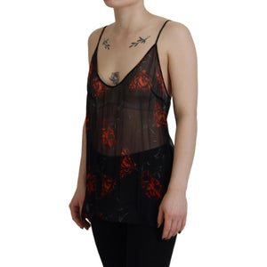 بلوزة تانك بطبعة زهور سوداء من Dsquared² بأشرطة رفيعة