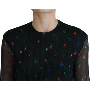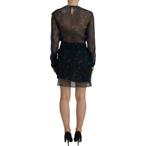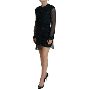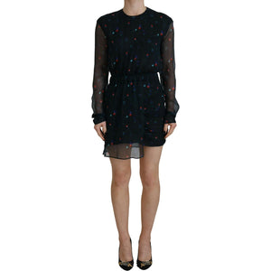 فستان قصير من الحرير بأكمام طويلة ومزين بنقشة زهور باللون الأسود من Dsquared²