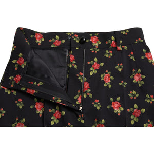 أضف لمسة من الفخامة الإيطالية إلى خزانة ملابسك مع هذا البنطلون الرائع ذو الخصر العالي والمزين بالزهور من Dolce & Gabbana. صُنعت هذه السراويل من مزيج من المواد، ولا تعد بمظهر حصري فحسب، بل توفر أيضًا راحة عالية لمرتديها. مثالي للارتقاء بمجموعتك اليومية أو لإلقاء نظرة مميزة في مناسبة مسائية، يتميز هذا البنطلون بخلفية سوداء أنيقة مع نمط زهور مذهل، يمزج بين الطرازين الكلاسيكي والمعاصر.