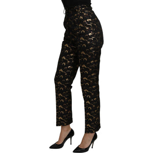 اكتشفي مثال الفخامة والأناقة مع هذا البنطلون المذهل ذو الخصر العالي والمقصب من Dolce & Gabbana. مثالي لإضافة لمسة من الرقي إلى أي ملابس، يتميز هذا البنطلون بتصميم مطرز رائع باللونين الأسود والذهبي، مما يضفي الأناقة مع كل خطوة. مع مقاس عادي مريح وسحاب إغلاق آمن، فهي عملية بقدر ما هي عصرية. صُنع هذا البنطلون في إيطاليا مع مراعاة التفاصيل، وهو يتباهى بشعار العلامة التجارية الشهير، مما يضمن الأصالة والجودة العالية.