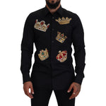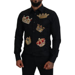 قميص دولتشي آند غابانا الأنيق ذو قصة ضيقة باللون الأسود مع تطريز على شكل تاج