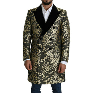 معطف دولتشي آند غابانا الذهبي الأسود ذو الصدر المزدوج من الجاكار Sicilia