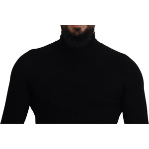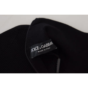 سترة دولتشي آند غابانا الأنيقة المصنوعة من الصوف الأسود ذات الياقة المدورة بنصف سحاب