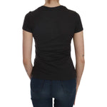 بلوزة إكستي السوداء ذات الرقبة الدائرية المطبوعة على شكل قلوب