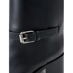 Burberry leather ankle boots in black, buckle ankle strap with logo print, round toe. Composition: 100% Leather-Interior zip:23GIU146-150