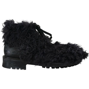 حذاء الكاحل من الجلد الأسود من دولتشي آند غابانا