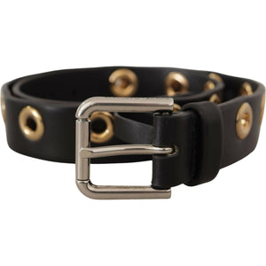 حزام دولتشي آند غابانا الأنيق المصنوع من الجلد الأسود مع مشبك محفور