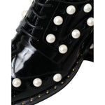 حذاء دولتشي آند غابانا من الجلد الأسود مع لؤلؤ صناعي