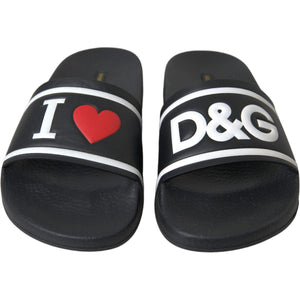 صندل دولتشي آند غابانا أسود من الجلد، حذاء آي لوف دي آند جي