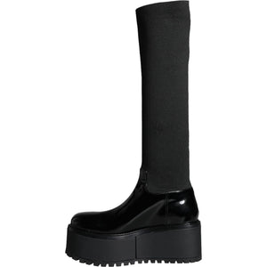 حذاء طويل حتى الركبة من دولتشي آند غابانا مصنوع من الجلد الأسود