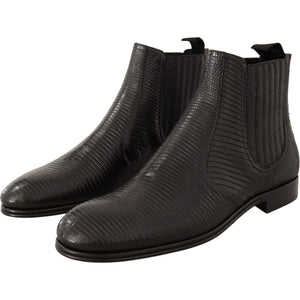 احصل على الفخامة مع هذا الحذاء الجلدي الأسود المذهل للغاية من جلد السحلية للكاحل. مثالية لأولئك الذين يقدرون التفرد والحرفية العالية، هذه الأحذية تتحدث عن الكثير بفضل تصميمها الأنيق والمواد الفاخرة. هذه الأحذية المصنوعة في إيطاليا هي شهادة على الأناقة الكلاسيكية التي تشتهر بها دولتشي آند غابانا. مع نعل مريح يجمع بين الجلد والمطاط، فهو يعدك بالأناقة والعملية. يضمن التمدد الدقيق على كلا الجانبين ملاءمة مثالية، مما يجعلها إضافة متطورة لأي مجموعة.