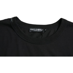 تي شيرت دولتشي آند غابانا أسود منقوش بشعار دولتشي آند غابانا بأكمام قصيرة ورقبة دائرية
