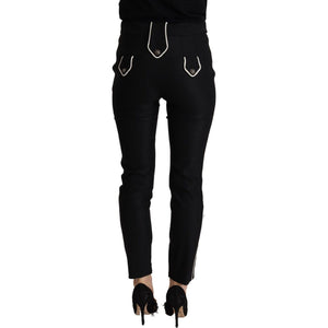 Dolce & Gabbana Black Mid Waist Button Embellished Slim Fit Pants