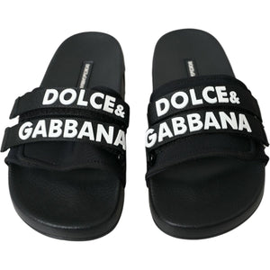 علامة تجارية جديدة رائعة مع العلامات، أحذية شاطئ منزلق أصلية 100% من Dolce & Gabbana مع شعار مصنوع من مزيج النايلون.
