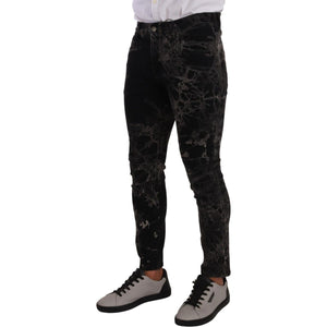 تمتع بالموضة الراقية مع هذا الجينز الضيق المذهل من Dolce & Gabbana . تم تصميم هذا الجينز خصيصًا لعشاق الموضة، ويتميز بنمط فريد من نوعه باللونين الأسود والرمادي الذي سيميزك عن الآخرين. مصنوع من مزيج من القطن والإيلاستين، ويوفر الراحة والملاءمة النحيفة، وهو مثالي لأولئك الذين يقدرون مزيجًا من الأناقة والعملية. يتميز هذا الجينز بسحاب كلاسيكي وزر للإغلاق ومزين بتفاصيل الشعار الأيقوني، وهو شهادة على الحرفية الإيطالية.