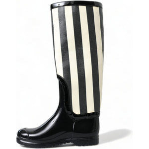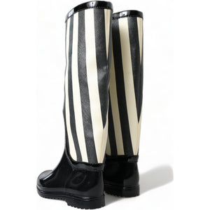 حذاء طويل حتى الركبة مخطط باللونين الأبيض والأسود من دولتشي آند غابانا