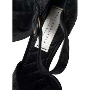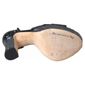 حذاء صندل بكعب عال من دولتشي آند غابانا باللون الأسود مزين بالترتر وحزام للكاحل