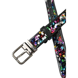 حزام نسائي من دولتشي آند غابانا مزين بالترتر الأسود ومشبك معدني فضي